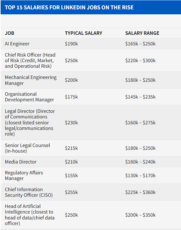 榜单前15名的职业除AI工程师外,还包罗首席风险官、机械工程师、组织成长司理、法令总监、总监、监管事务参谋、电力系统工程师?。