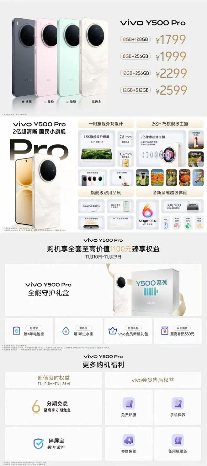 今天晚间,vivo 正式发布新机 Y500 Pro,新机定位「国平易近小旗舰」,正在影像、电池取系统方面比拟上代均有冲破,焦点设置装备摆设如下。